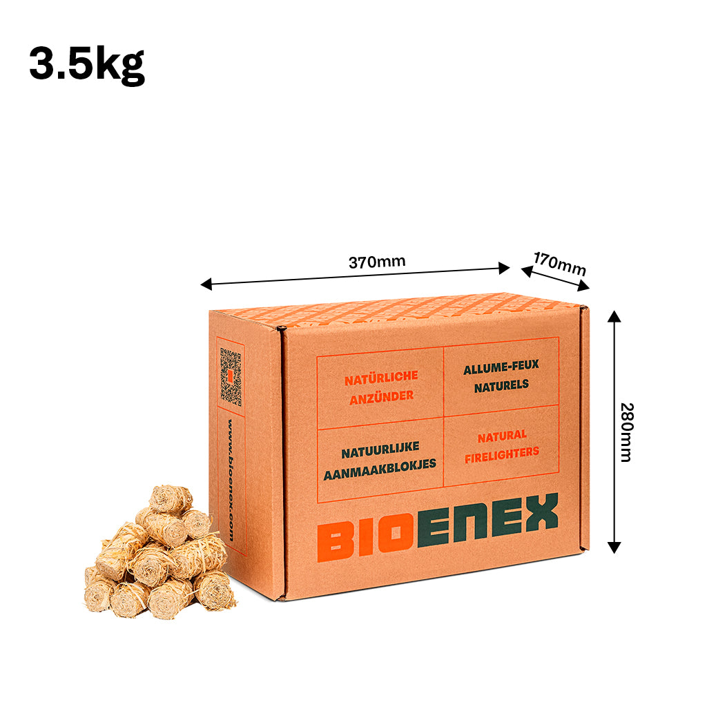 Das Herzstück der BIOENEX Natürlichen Feueranzünder ist hochwertige Holzwolle, die aus nachhaltigen, verantwortungsvoll bewirtschafteten Wäldern des Baltikums stammt. Dieses Material eignet sich hervorragend für natürliche Anzündhilfen, da es eine große Oberfläche und eine hohe Wärmeleistung aufweist. Jeder umweltfreundliche Feueranzünder ist mit einer dünnen Schicht aus natürlichem Wachs überzogen, um die Verbrennung zu erleichtern.